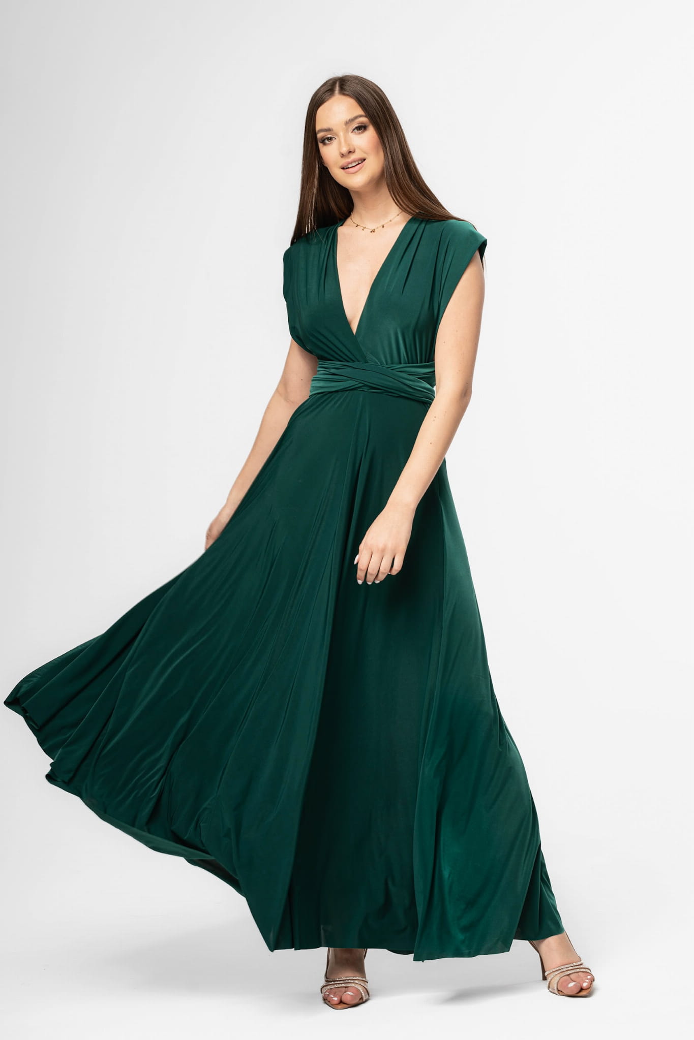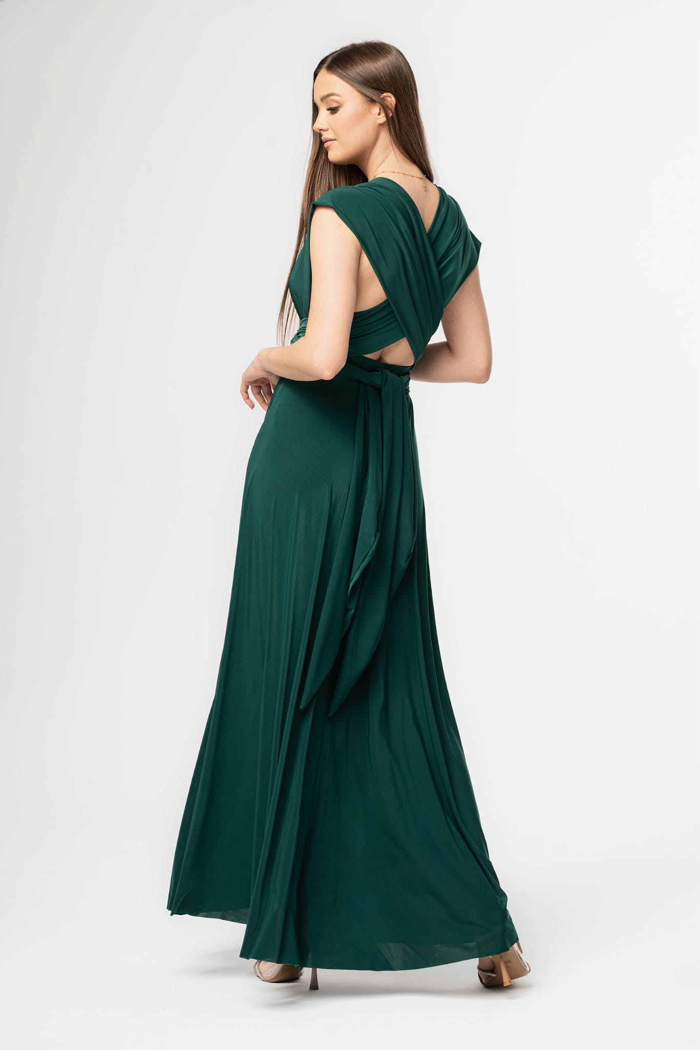 To nasza sukienka od zadań specjalnych z wyjątkową funkcją multiway. Posiada ona dwa pasy, które umożliwiają zawiązywanie jej na wiele sposobów, tak aby idealnie dopasowała się do naszej figury i wyeksponowała to na czym najbardziej nam zależy. Wycięty dekolt, czy odkryte plecy? Wybór należy do Ciebie. Ta sukienka o wieczorowym fasonie sprawi, że poczujesz się wyjątkowo - niezależnie od okazji.
