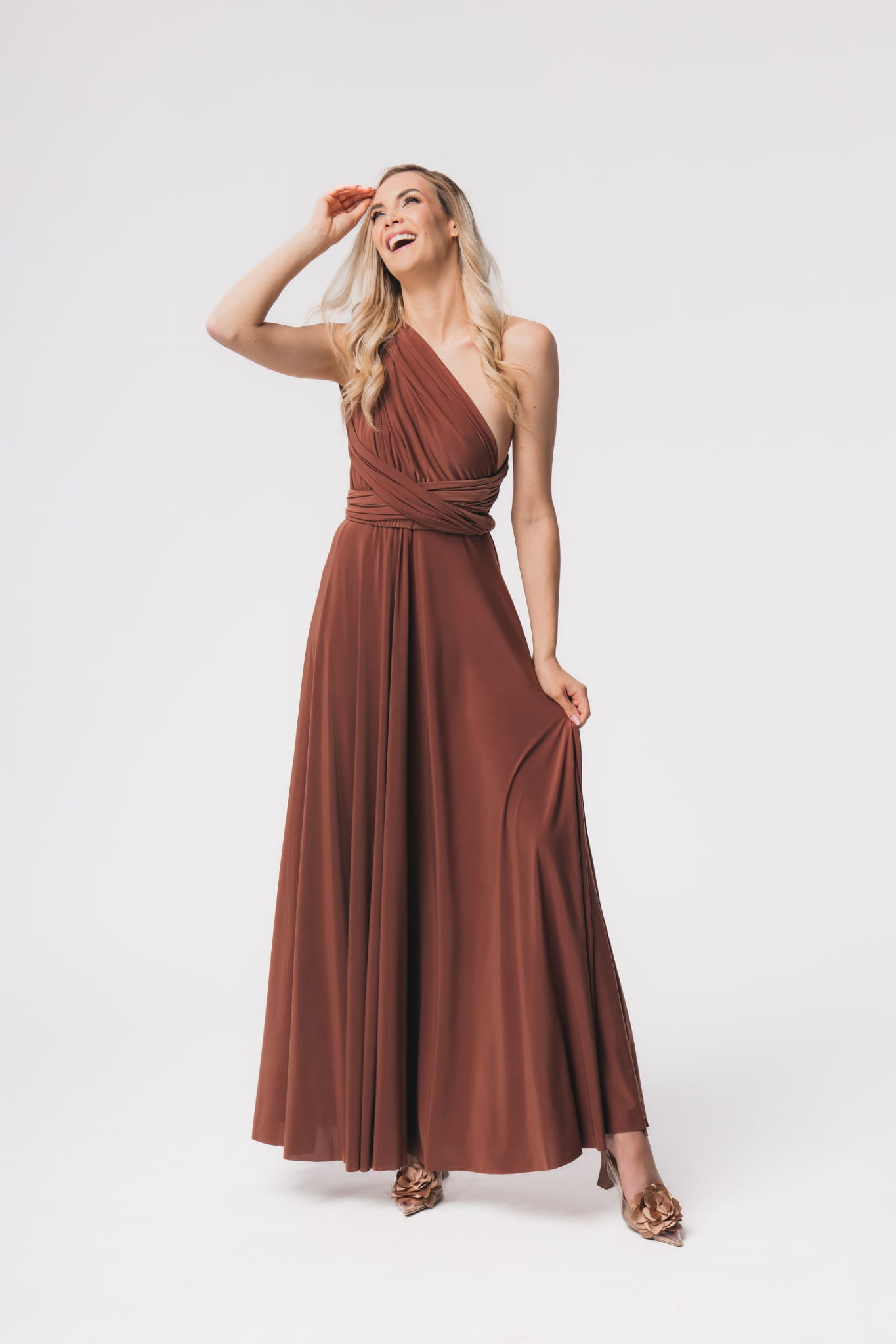 To nasza sukienka od zadań specjalnych z wyjątkową funkcją multiway. Posiada ona dwa pasy, które umożliwiają zawiązywanie jej na wiele sposobów, tak aby idealnie dopasowała się do naszej figury i wyeksponowała to na czym najbardziej nam zależy. Wycięty dekolt, czy odkryte plecy? Wybór należy do Ciebie. Ta sukienka o wieczorowym fasonie sprawi, że poczujesz się wyjątkowo - niezależnie od okazji.