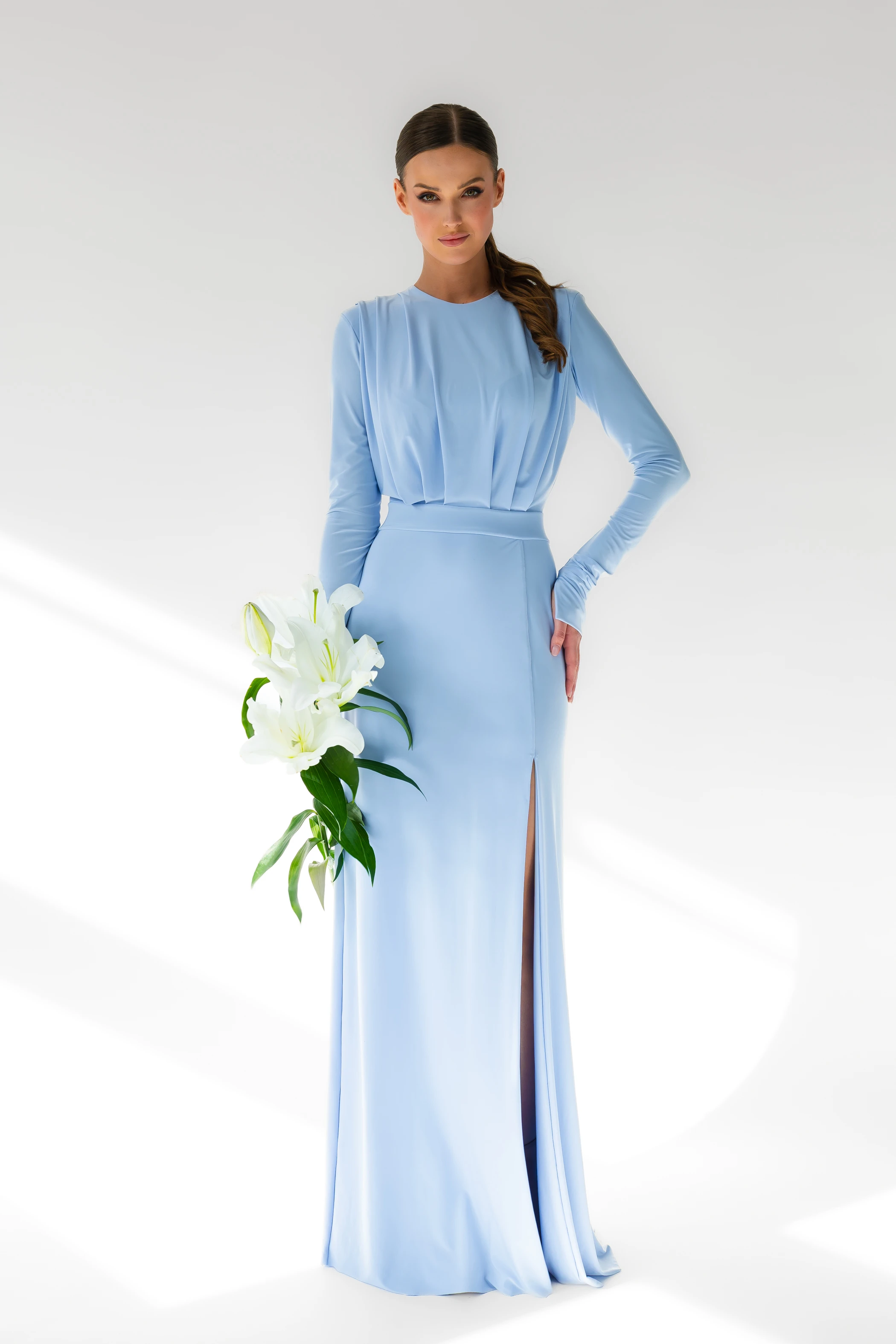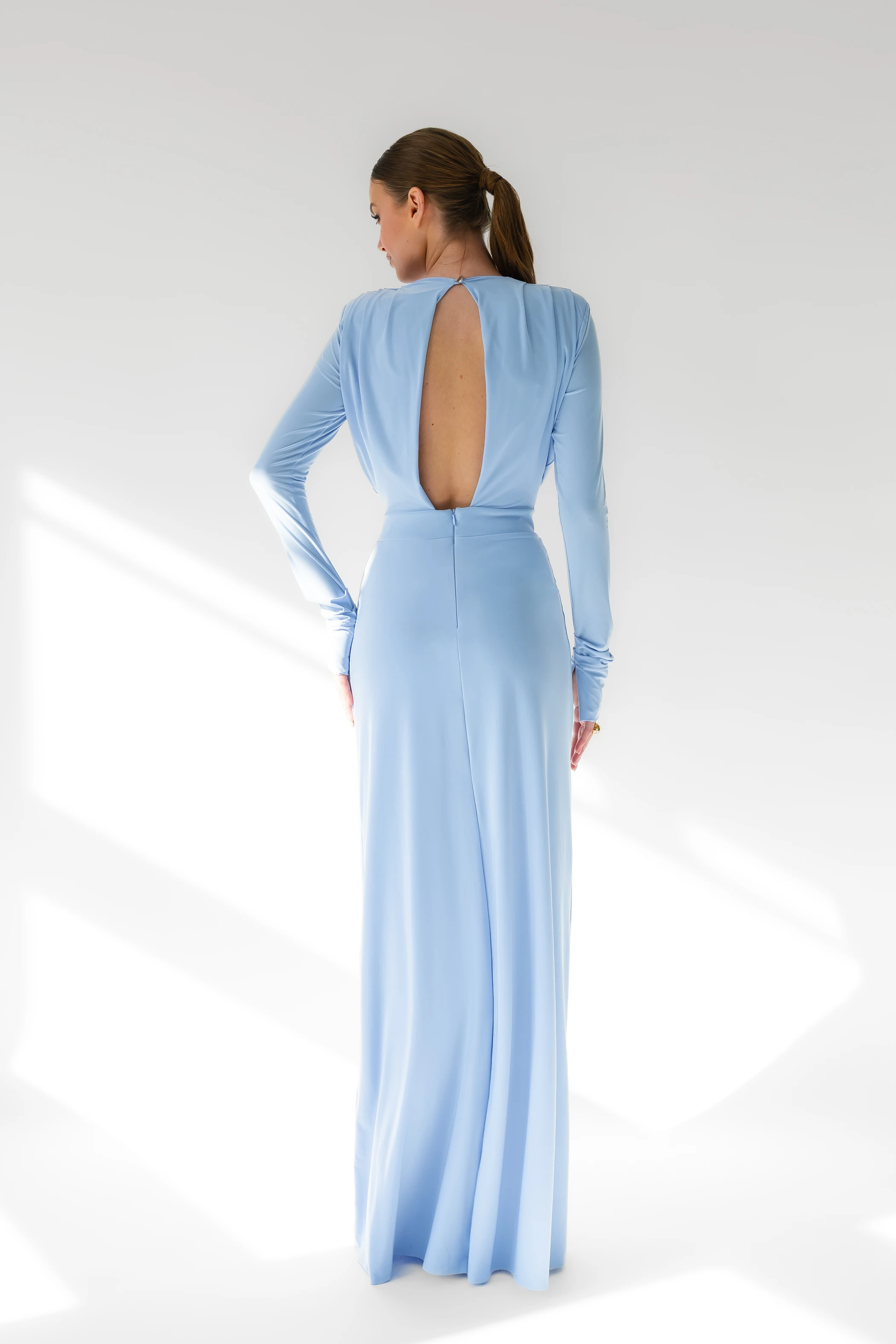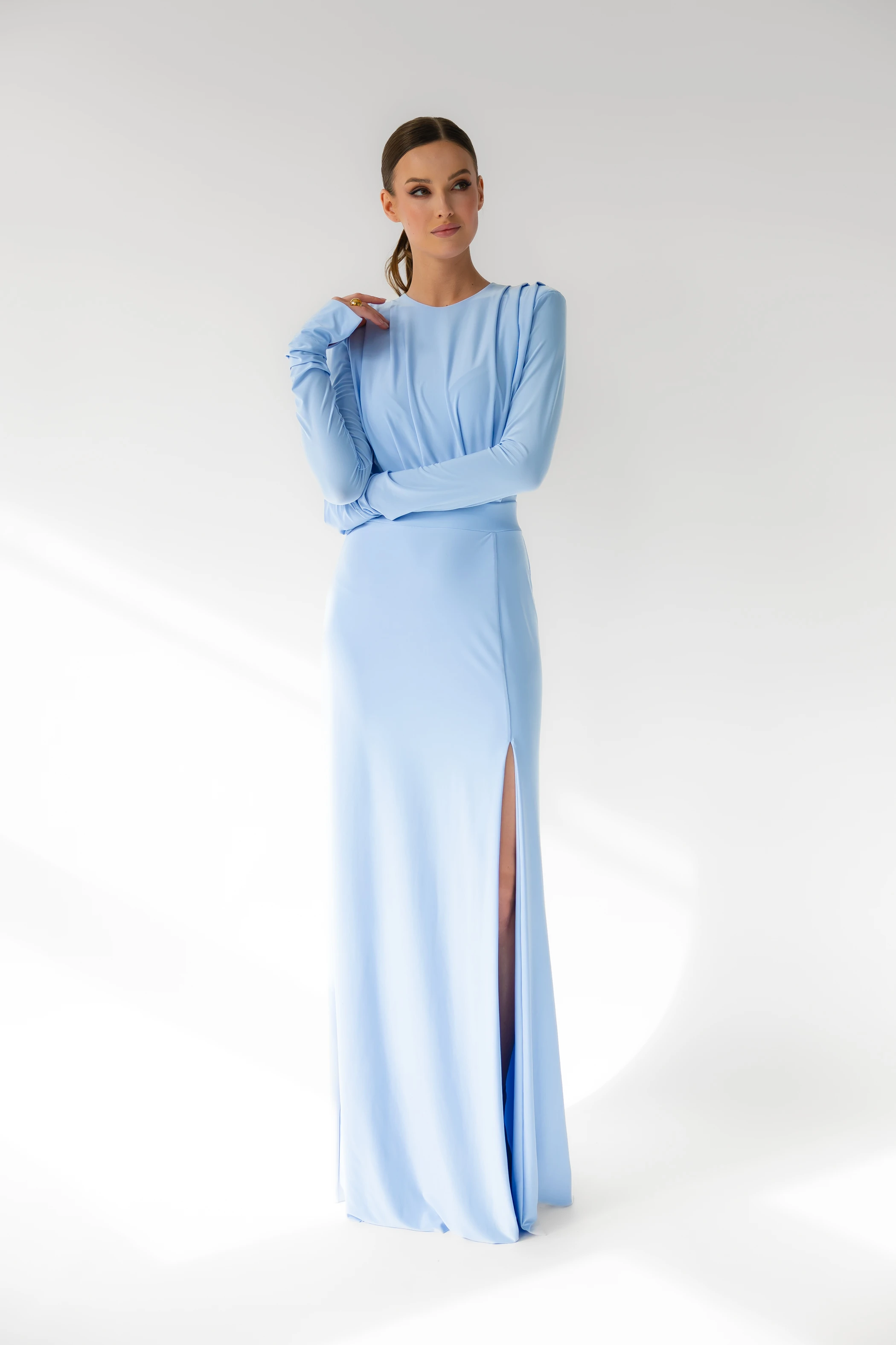 Annabelle / BABY BLUE/ Sukienka maxi z poduszkami na ramionach