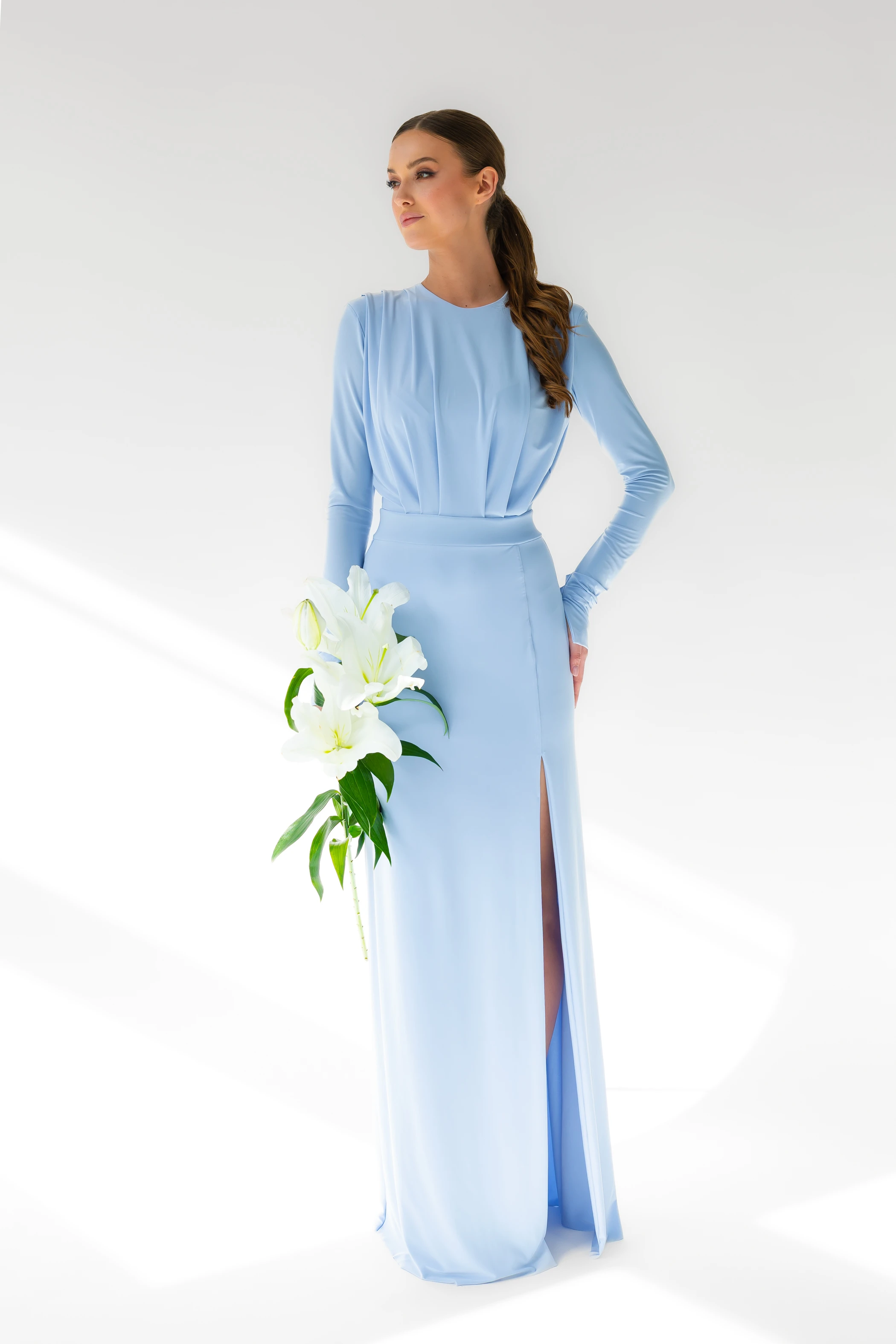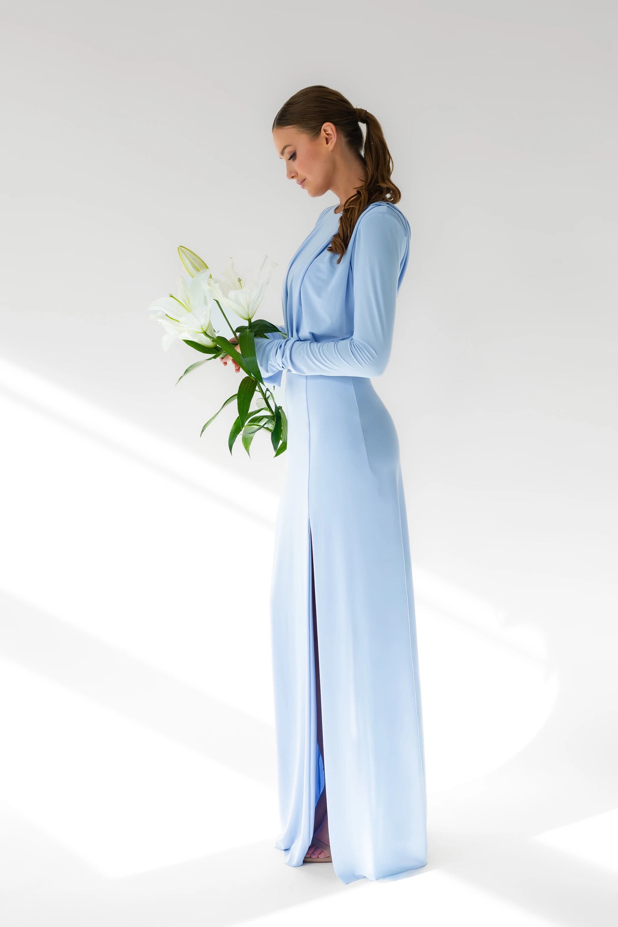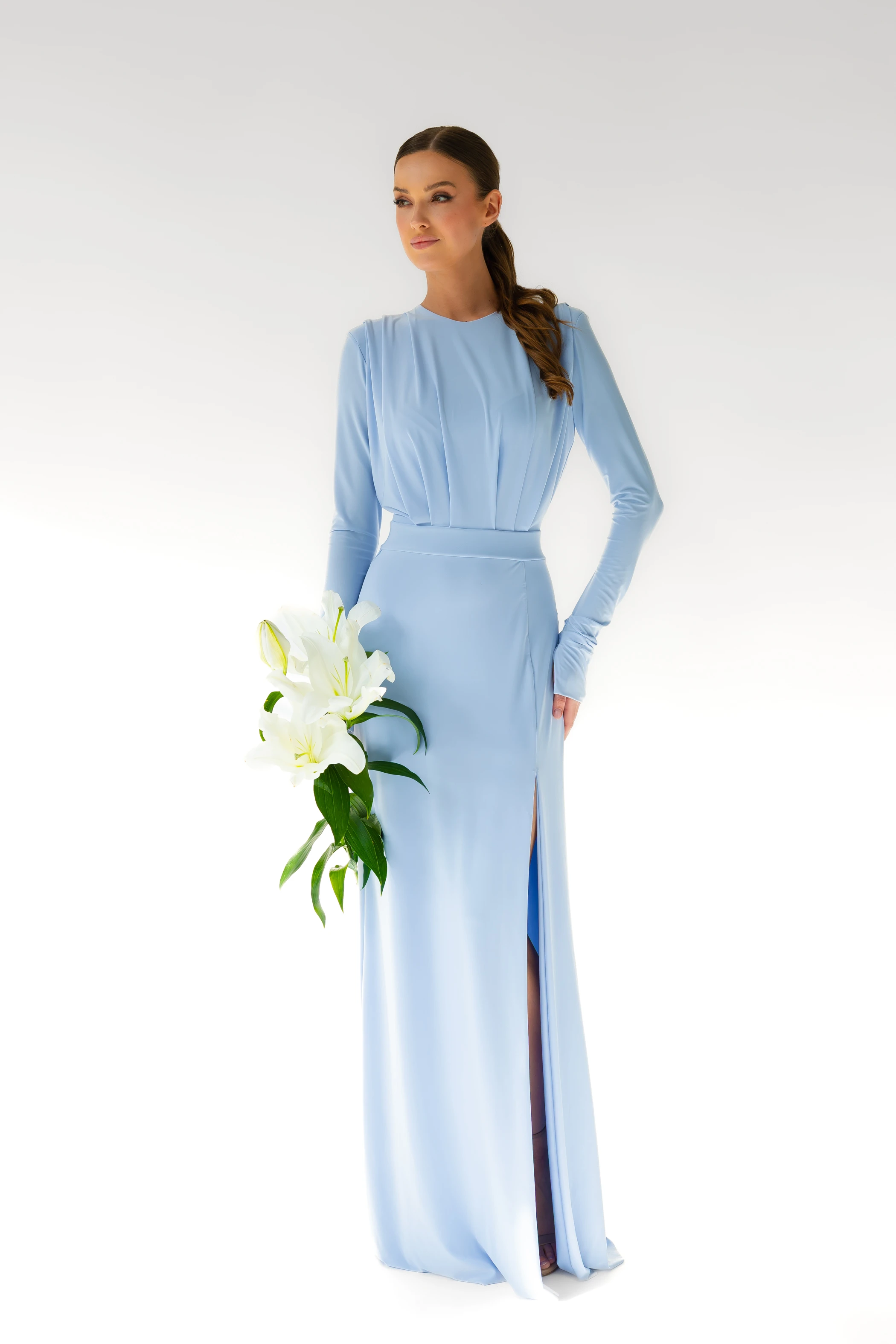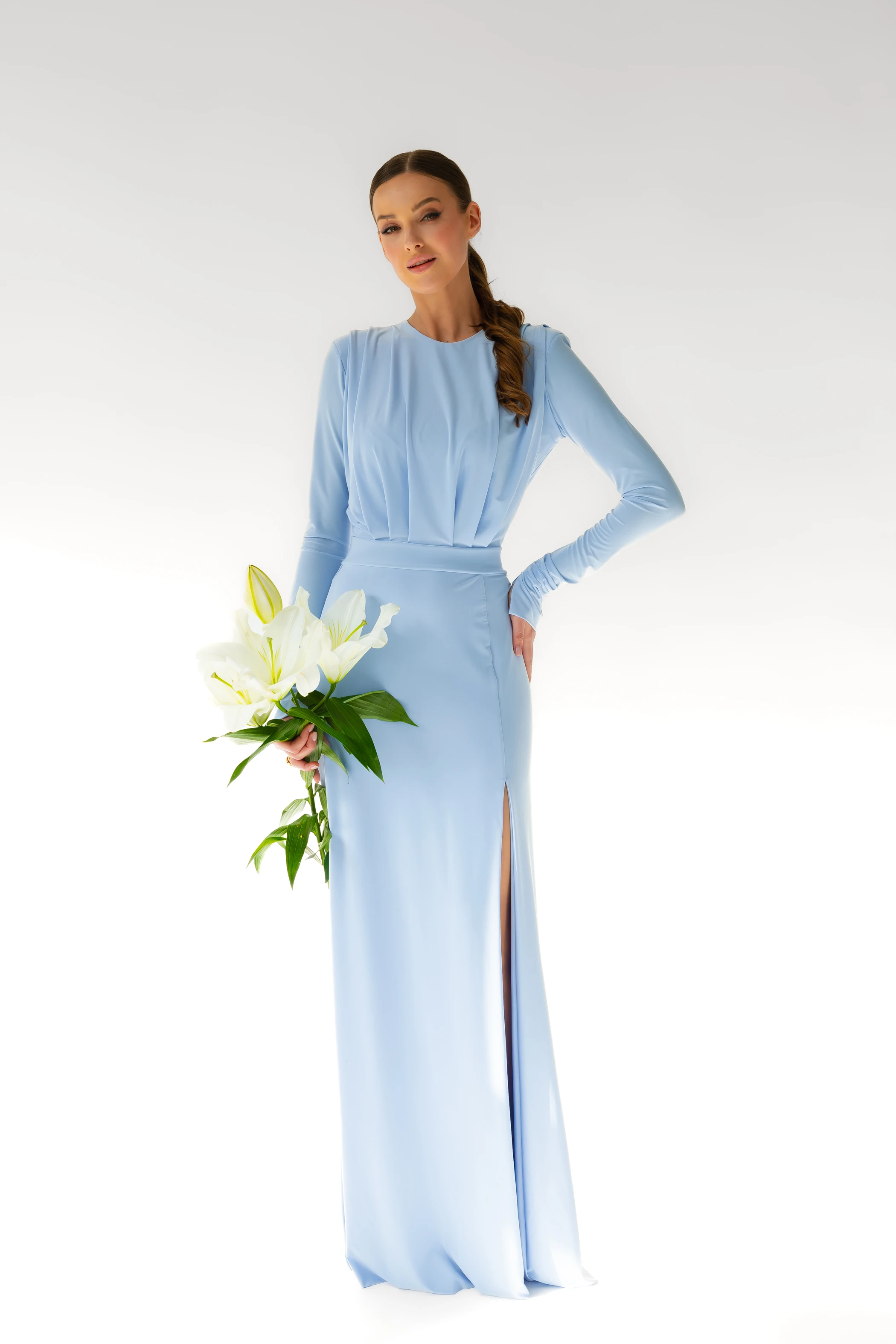 Annabelle / BABY BLUE/ Sukienka maxi z poduszkami na ramionach