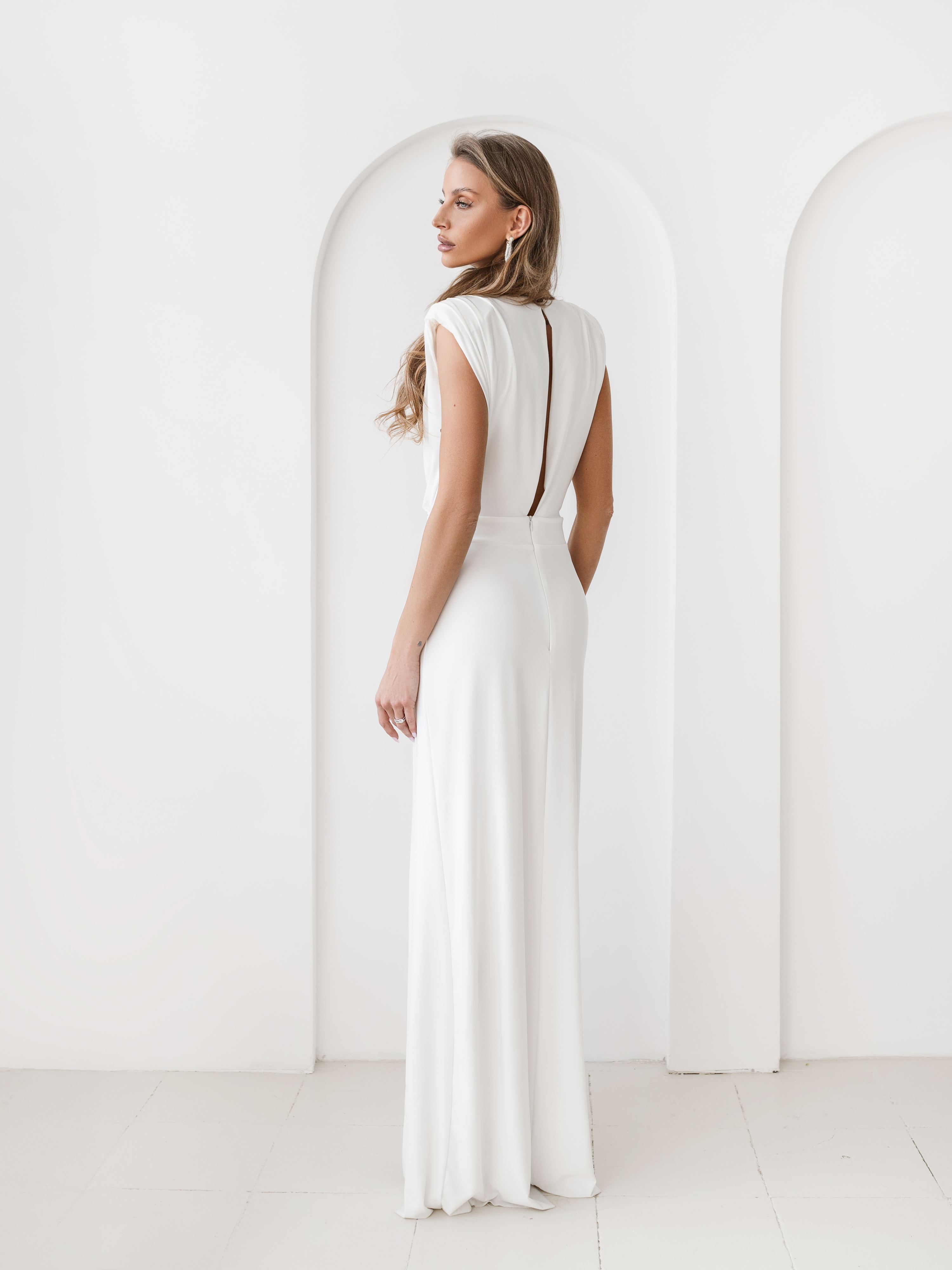 To idealna sukienka na ślub, wesele czy jako stylizacja na drugi dzień uroczystości. Subtelne rozcięcie na plecach dodaje całości lekkości i zmysłowego charakteru, zachowując przy tym klasę i wyrafinowanie.